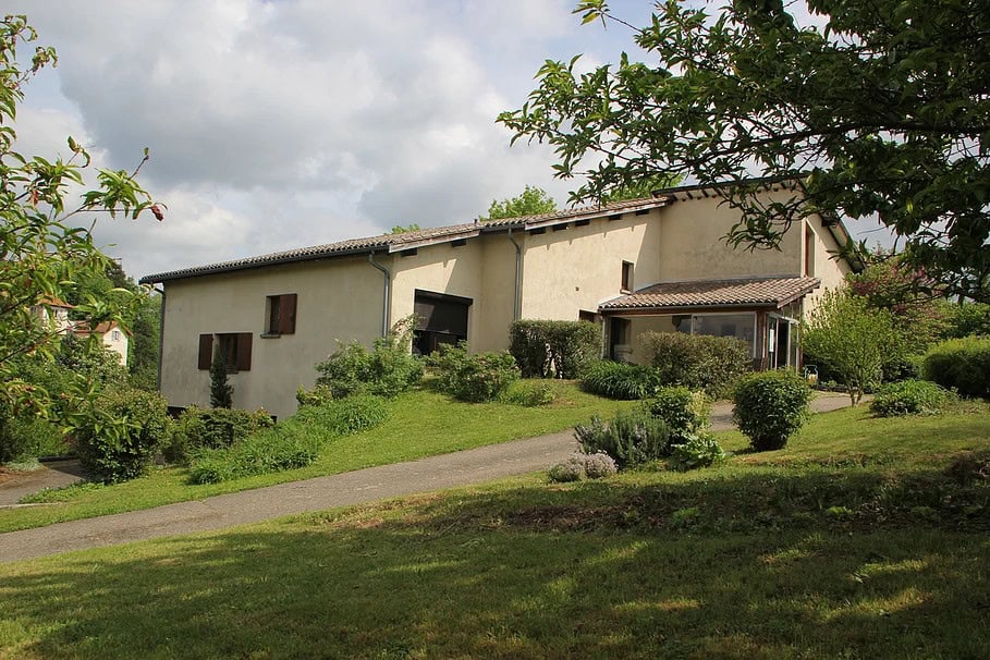 Nous sommes tombés par hasard sur cette maison de caractère imaginée en 1973 par Claude Giroud, célèbre architecte Viennois. Cette batisse est implantée sur la coline des Tupinières et possède une localisation idéale :